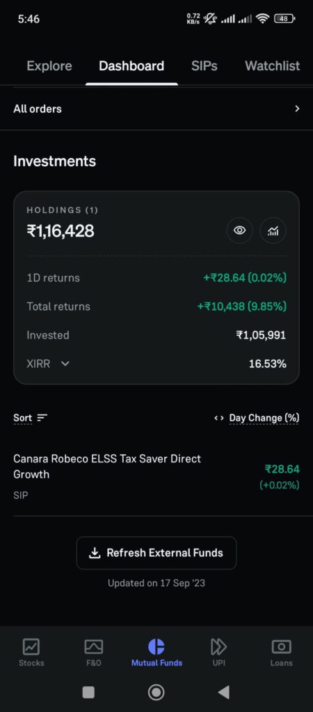 आज मार्केट थोड़ा अच्छा रहा  , अच्छा इसीलिए क्योंकि नेगेटिव में नहीं गया  0.02% की बढ़ोत्तरी के साथ day return total रु 28.64 हो गया